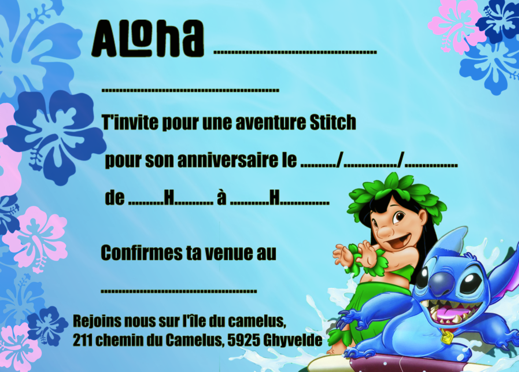 Option : déguisement sur le thème Stitch pour un anniversaire aux couleurs des îles